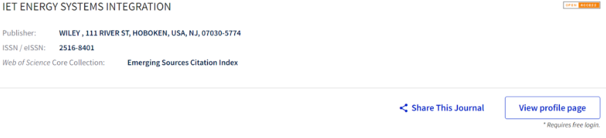 IET是歐洲規模最大、全球第二(僅次于IEEE)的國際專業學會,在工程技術領域具有廣泛的影響力和聲譽。IET Energy Systems Integration作為IET的一本年輕期刊,于2019年開始出版第一卷論文,目前已經發展到2022年的第4卷。該期刊每年出版4期,是一個季刊。