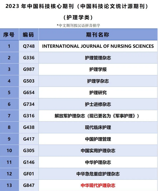 在自然科學卷中,2023年中國科技核心期刊收錄了13本護理學類期刊,有效期至2024年12月。