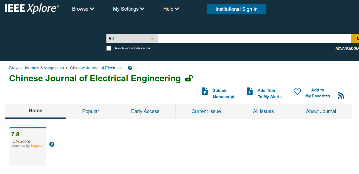 Chinese Journal of Electrical Engineering影響因子現在是0,2024年7月29日,《中國電氣工程學報(英文)》(Chinese Journal of Electrical Engineering,CJEE)正式被Emerging Sources Citation Index(ESCI)數據庫收錄,并將于2025年獲得首個影響因子(IF),ESCI數據庫將收錄CJEE自2022年起發表的所有文章(Volume 8,Issue 1)。
