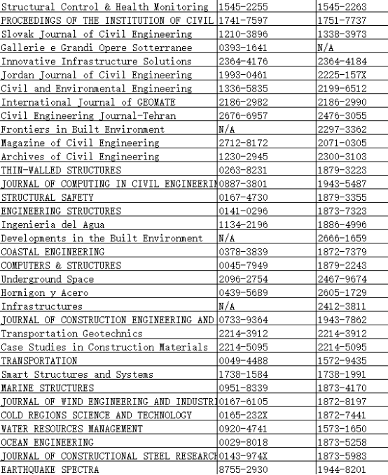 以上是土木領(lǐng)域的部分期刊目錄,選擇期刊要注意有些期刊好投,有些期刊審稿快、有些期刊國人友好,不知道如何選擇的可以咨詢下我們的在線學(xué)術(shù)顧問,為您推薦適合的投稿期刊。