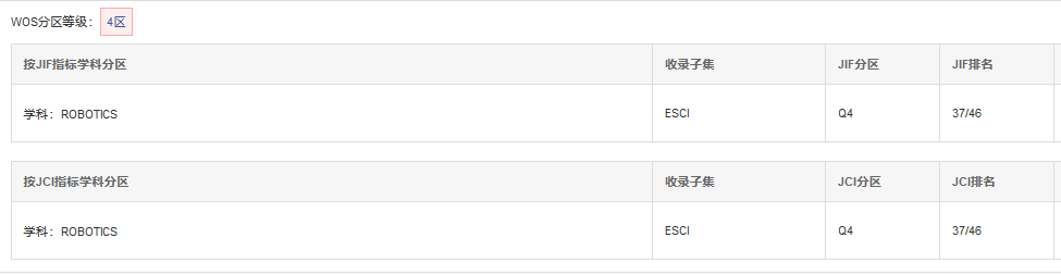 學科與分區:Journal of Robotics屬于ROBOTICS學科。