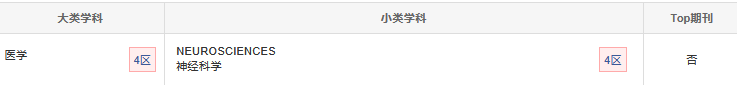 中科院分區:在2025年3月最新升級版中,大類學科“醫學”為4區,小類學科“NEUROSCIENCES”為4區,不屬于Top期刊和綜述期刊,整體在中科院分區中處于較低位置。