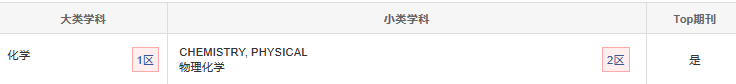 中科院分區:2025年3月最新升級版中,大類學科“化學”為1區,小類學科“物理化學”為2區,屬于Top期刊;歷史分區中,大類學科曾為1區或3區,但小類學科均維持在2區左右,國內認可度為頂級水平。