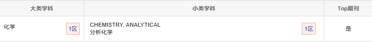 中科院分區:2025年3月最新升級版中,大類學科“化學”為1區,小類學科“分析化學”為1區,屬于Top期刊;歷史分區中大類學科曾為4區,但小類學科始終維持1區,國內認可度為頂級水平。
