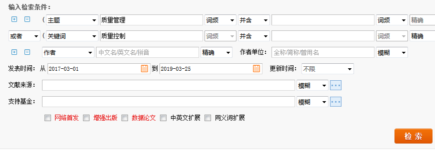 可以在文獻數據庫檢索質量管理、質量控制等關鍵詞,查看相關的論文是在哪些期刊上發表的,摘選出質量論文發表期刊名稱之后可以做對比,從中選擇適合自己投稿的期刊。如圖和舉例: