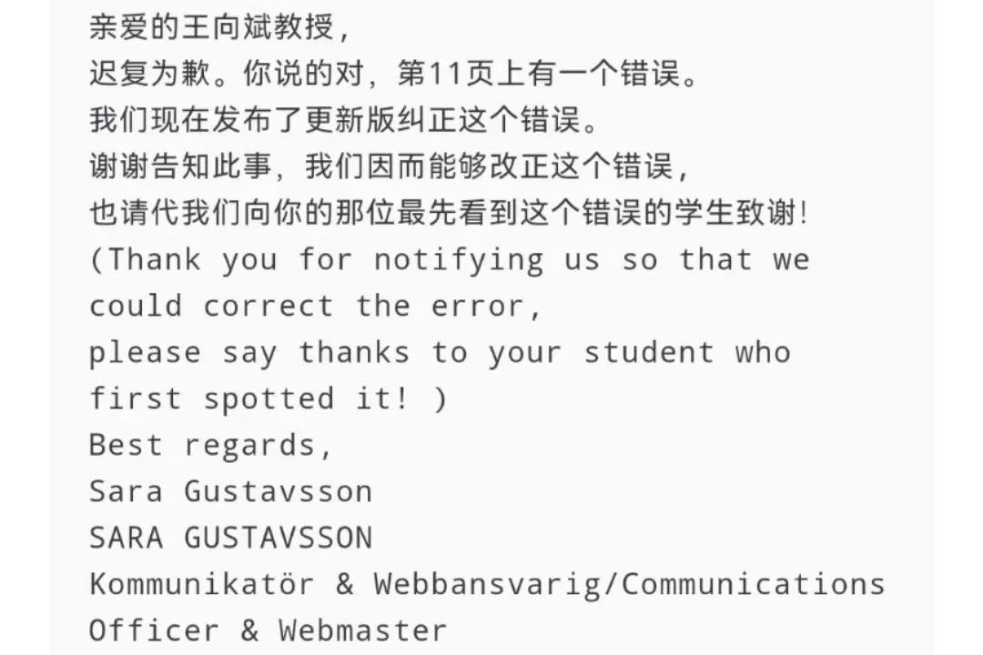 于是王向斌幫助木清把發現的問題反饋給了瑞典皇家科學院。對方誠摯接受并按照建議更新了報告版本。
