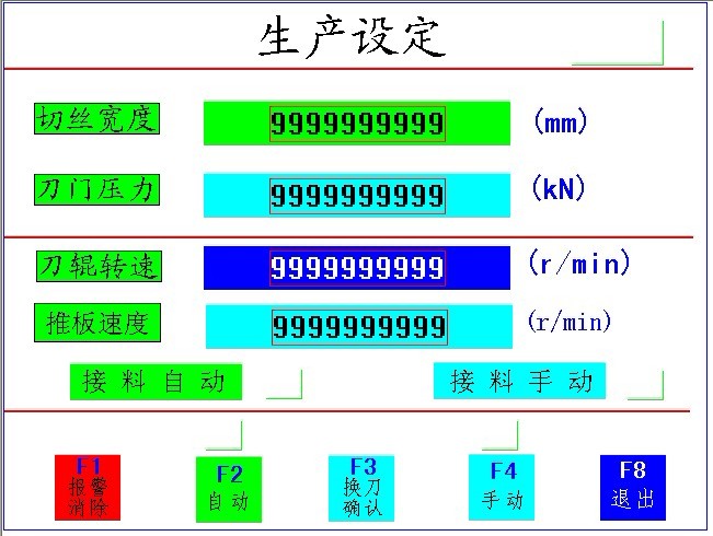 為了操作方便,在切葉絲機操作終端的生產設定畫面里,增加推板轉速設定按鈕,根據需要設定相應的轉速。