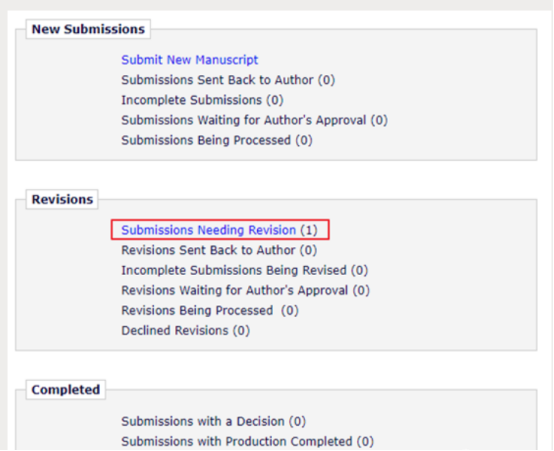 修回的稿件會被移動到 “Revisions” 這個部分: